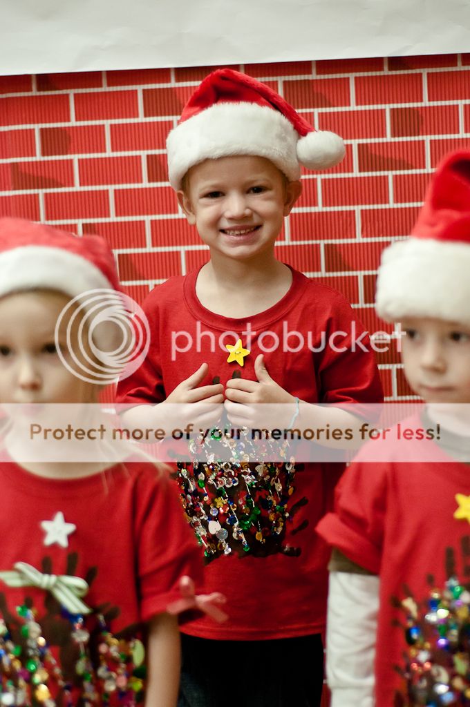 Hunter's Christmas program was nothing short of fantastic - his teacher puts in so much time and energy to make this production a success and it was awesome. They sang and danced to all sorts of fun songs. Hunter is definitely not our show-man and he rarely did the hand motions associated with the songs; but he knew every word and sang them loudly and never left the little sticker on the stage that said his name.