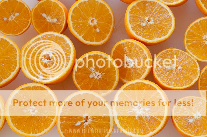I set up a station outside on the patio and I went to town juicing baskets full of oranges.