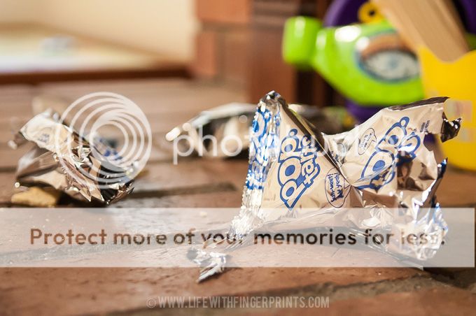 That same morning I found an attempt to open an otter pop on the leather chair and a capri sun who had seen better days on the rocking chair. Would you believe we have a food-stays-in-the-kitchen rule?!