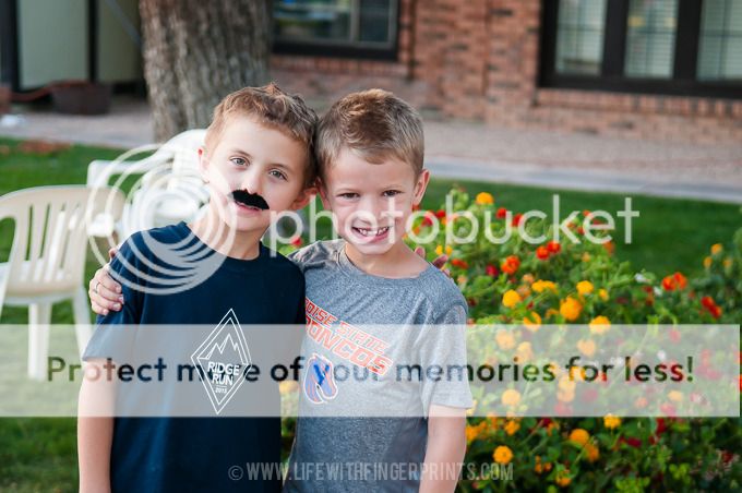 Not to mention: the bounce house, dinner (plus everyone brought food to share), photo booth with props, the balloon artist and I can't forget music and dancing. Hunter's friend drug him out on the dance floor and he danced and danced and danced. I've never seen the kid dance and he was a machine. And then he found out that there was a t-shirt prize for dancers that were thrown out and he danced his heart out and was pleased as could be when both he and his friend walked away with shirts!