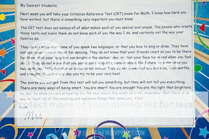 The scores you will get from this test will tell you something, but they will not tell you everything. There are many ways of being smart. You are smart! You are enough! You are the light that brightens my day! So while you are preparing for the test and in the midst of it all, remember that there is no way to "test" all of the amazing and awesome things that make you, YOU!