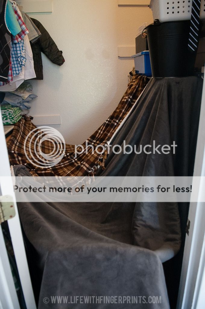 He had turned his closet into a fort, which made it difficult to gather clothing without damaging his hard work.