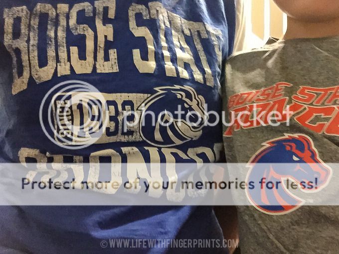 Saturday evening Hunter and I found ourselves dressed to watch the BSU vs BYU game in which I sent Hunter to bed before the game was through and I ended up disappointed in a living room by myself. Mediocre game for the most part and a less than stellar ending if you're cheering for BSU. BYU fans on the other hand had something to celebrate. And typically I would celebrate a BYU win - unless its against the Broncos.