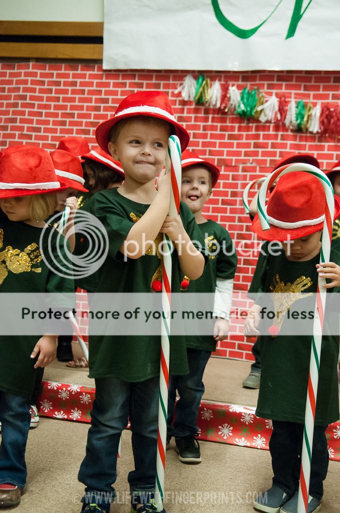 A candy cane will make just about any kid smile. This is a special Santa because it just so happens to be the exact Santa that Cannon met when he was just a few weeks old. And even though I don't have a kid in preschool next year I might still have to go to the program just to see our favorite Santa.