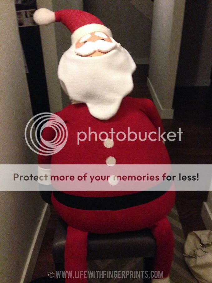 The other night I returned from a friend's and the house was dark. Which is not uncommon. I parked in the garage, walked in the door and immediately turned off the garage light which then left me in a completely dark house. I suddenly saw a shadow right in front of me which I knew was Steve. He likes to pop out of unexpected places, especially in the dark. So I started laughing, knowing he was trying to scare me. I didn't hear any breathing. I found the hall light and screamed when I turned on the light and saw Santa. Life-size santa just chill in' in the hallway. I immediately head to the bedroom to wake Steve up and I walk in to him just laughing. He heard me scream and thought that was so funny. (Reminds me of a certain scorpion incident).