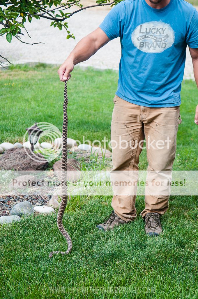 They've got animals galore. Some welcome - some not so welcome. Like the snake they found while we were there. The kids thought Uncle Derrick was pretty cool holding that snake, none of them wanted to take a turn holding it!